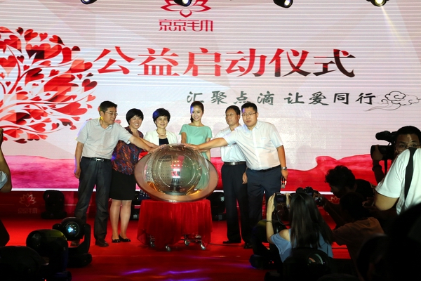 随后在各位领导各位嘉宾各位媒体的见证下京京毛巾启动了“汇聚点滴,与爱同行”的公益启动仪式,京京毛巾同林心如一同呼吁大家关爱公益。